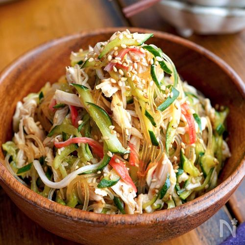 レンジで簡単♪ ささみときゅうりの中華風春雨サラダ。