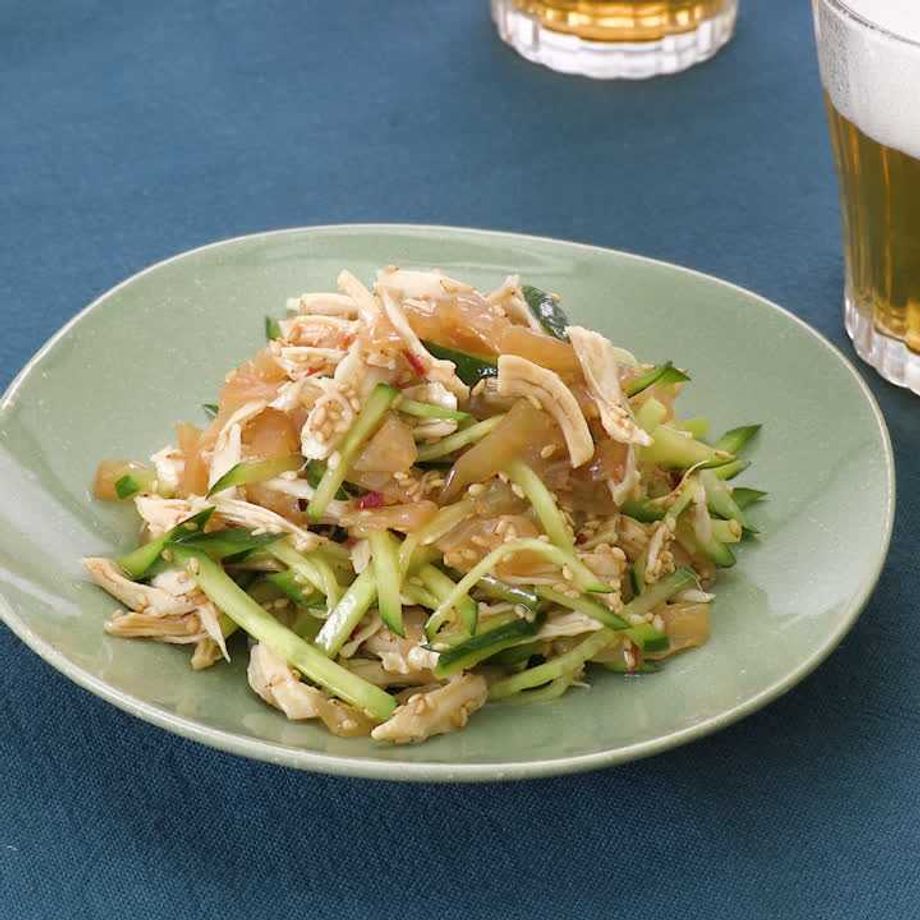 おつまみにもぴったり! 中華クラゲとササミのごま風味和え。