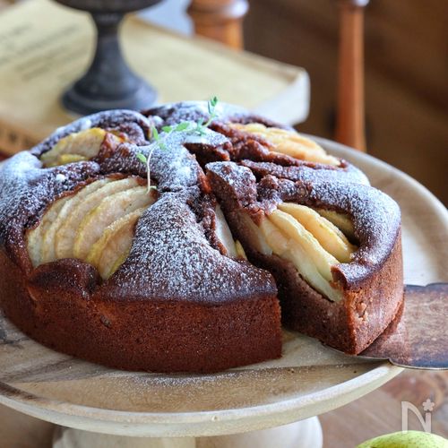 混ぜて焼くだけ!簡単♩油分控えめ!, 『米粉洋梨ショコラケーキ』レシピ, 他レシピ▷ @mariko_lifestyle ,𓎩いいね&保存&フォローありがとうございます𓎪, とても励みになります𓈒𓏸𓐍コメントも嬉しいです𓇢 𓆸,洋梨はそのまま切って生地に入れるだけ!とても簡単にできる焼き込みケーキ。グルテンフリー、油分、砂糖控えめに仕上げていますが、洋梨が、火が通りやすく柔らかく甘くなり美味し。