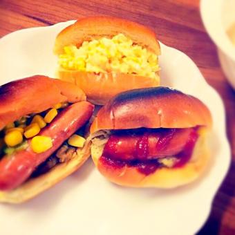 ホットドッグ風と卵バターロールサンドときめきって素敵O ≧∇≦ o。