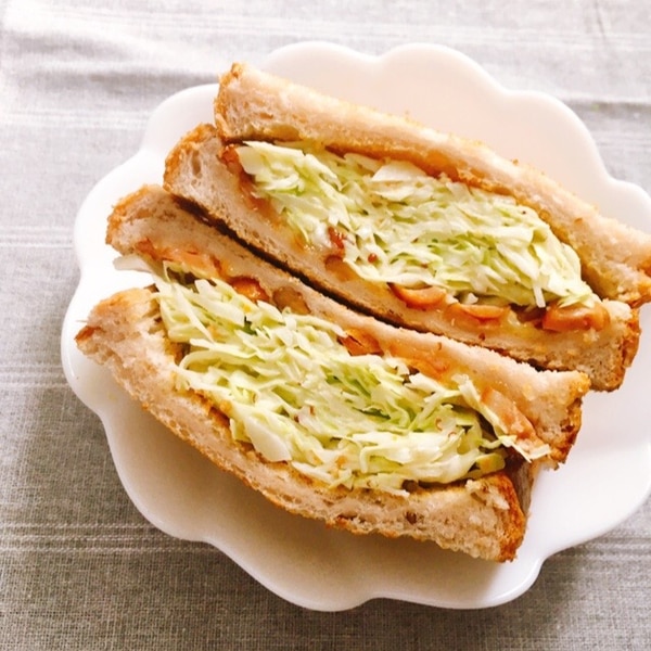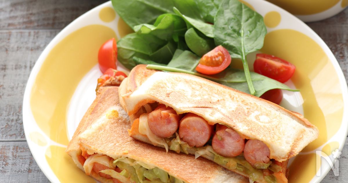 キャベツとソーセージのピザサンドのレシピ・作り方とっておきレシピキユーピ。