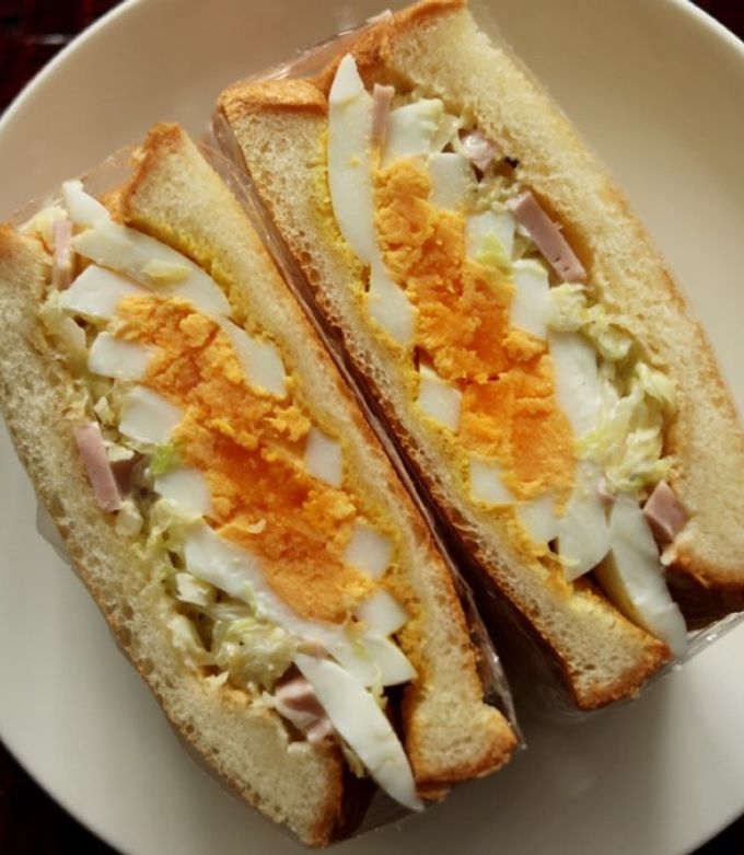 ゆで卵丸ごと!春キャベツでボリューム満点卵サンド。