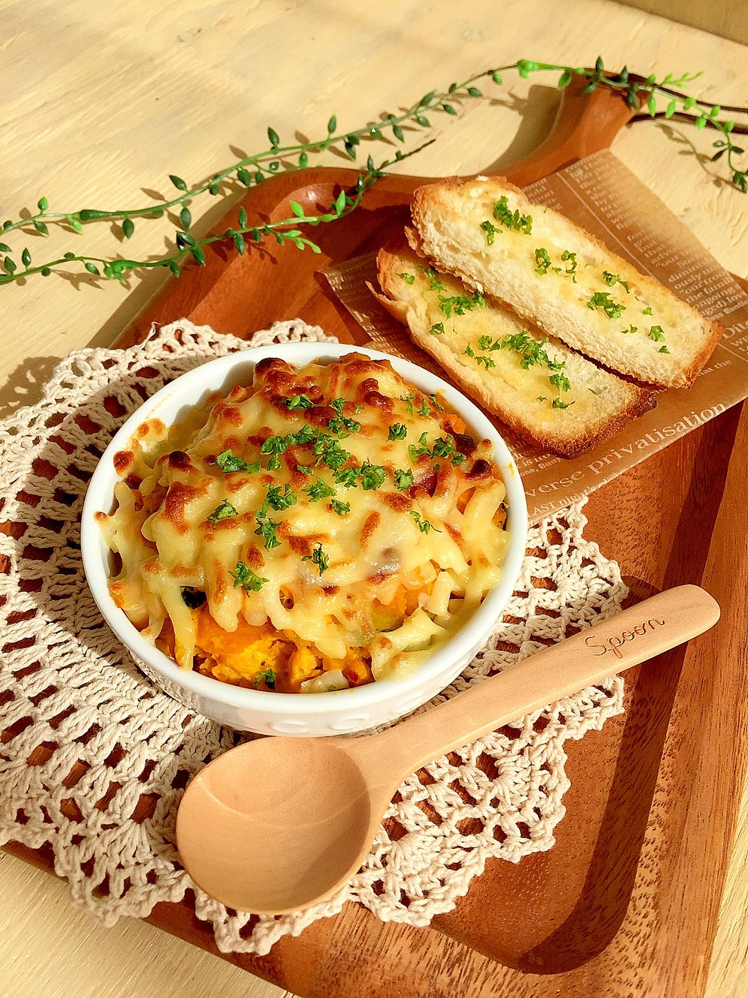 煮込み不要⭕絶品極うま😁, かぼちゃとお餅のグラタン。