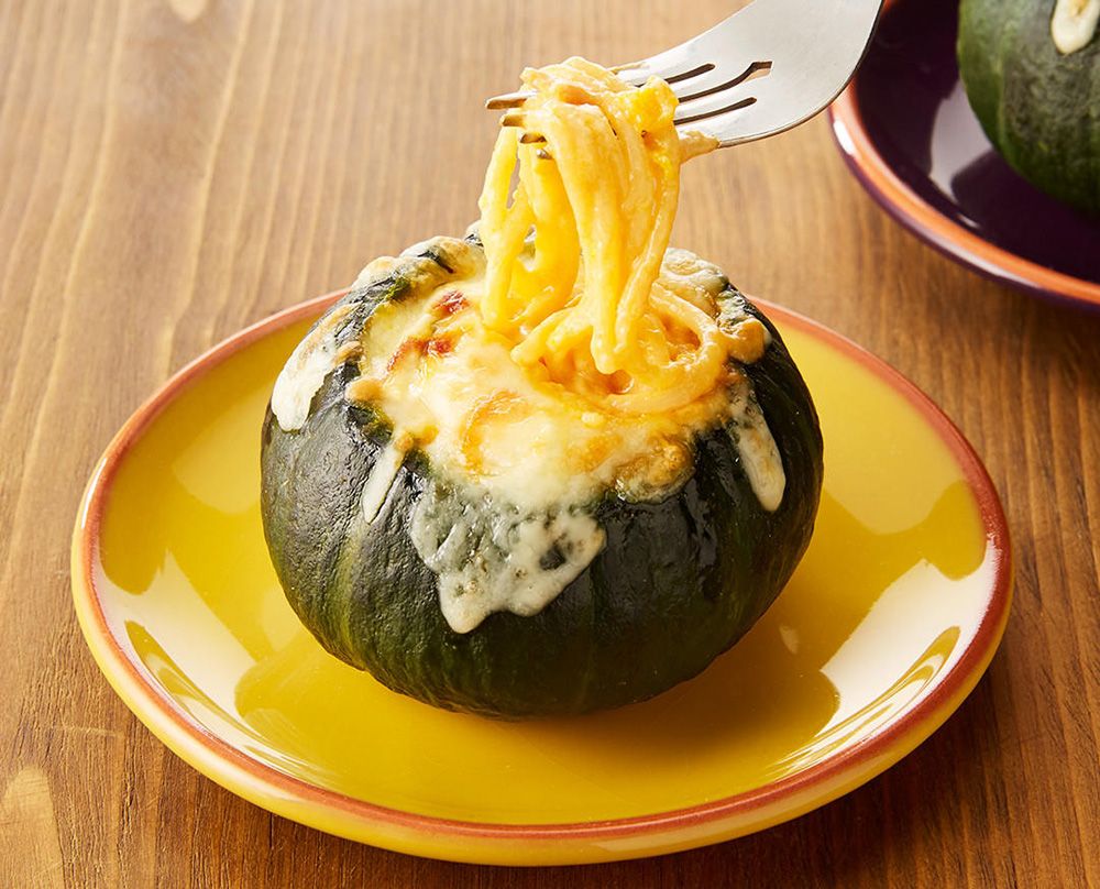 冷凍パスタアレンジ!丸ごとかぼちゃのナポリタングラタン。