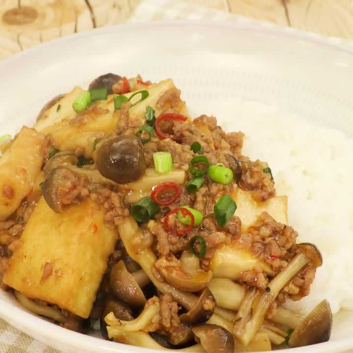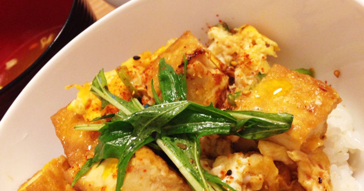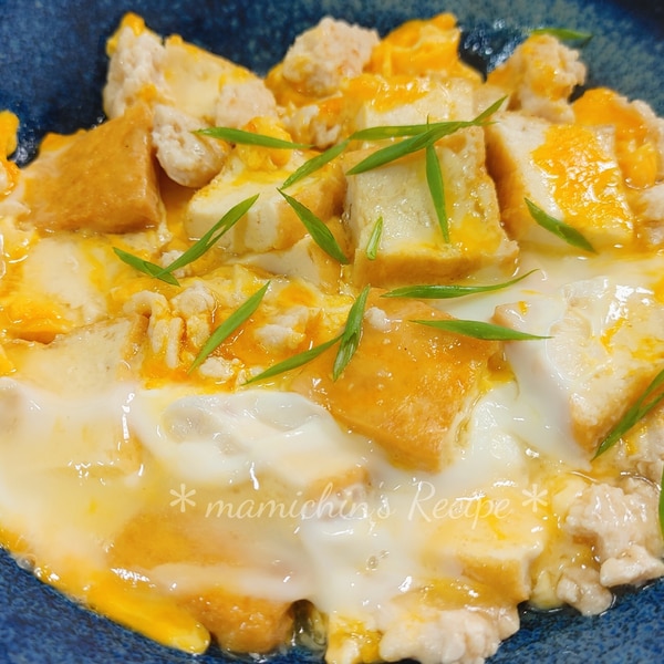 厚揚げ ひき肉 卵とじ丼おすすめの写真