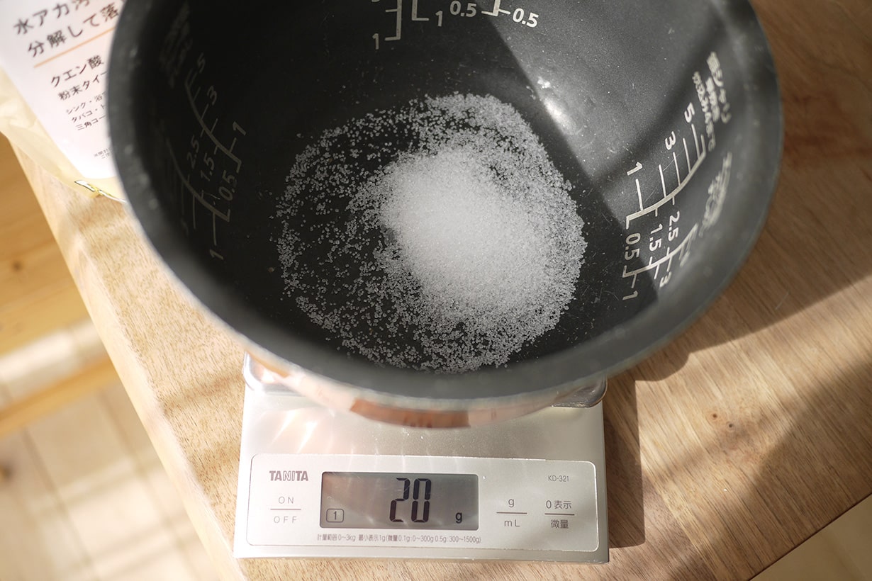 クエン酸〇〇グラムは大さじ・小さじ・カップで何杯?グラム↔杯の換算ツールと10g毎の早見表1杯あたりの重さも掲載。