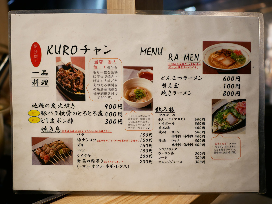 メニュー写真 : 博多屋台さつまや - 西鉄福岡 天神焼き鳥食べログ。
