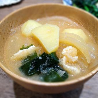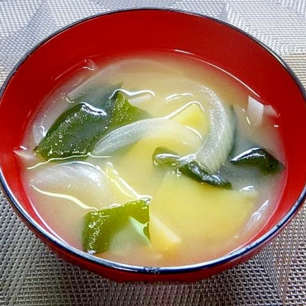 じゃがいもと玉ねぎとわかめのお味噌汁 レシピ・作り方。