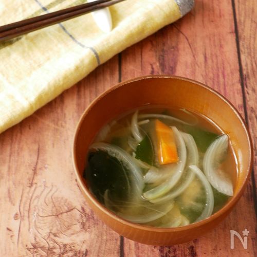ほんのり甘い♪玉ねぎとわかめのみそ汁レシピ素材力だし®。