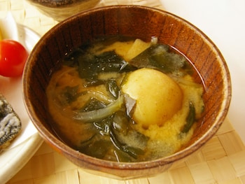 玉ねぎとわかめの味噌汁 11002029549 の写真・イラスト素材アマナイメージズ。
