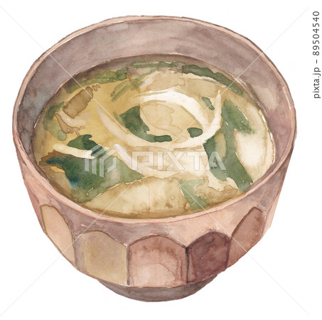 わかめと玉ねぎ入りみそ汁 水彩素材のイラスト素材89504540- PIXTA。