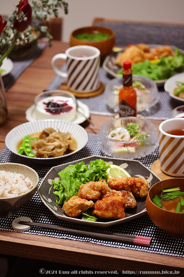 さくさく唐揚げ。と お家お誕生日の献立。よめ膳@YOMEカフェ。