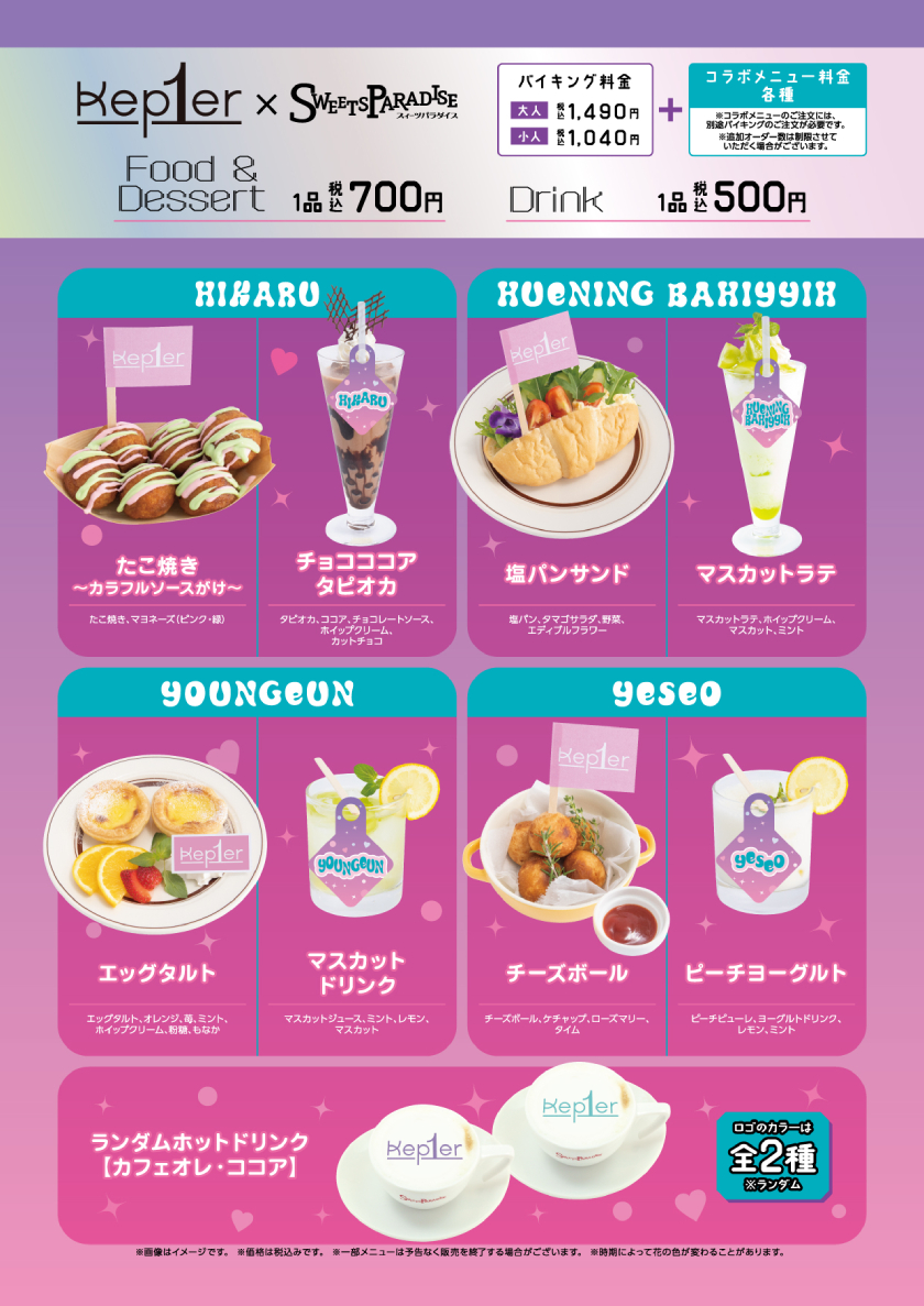 K-POP次世代グローバルガールズグループ『Kep1er ケプラー 』×SWEETS PARADISE コラボカフェ開催決定!プラス 料金で、メンバープロデュースによるオリジナルコラボメニューを提供♪ 詳細記事SGS109。