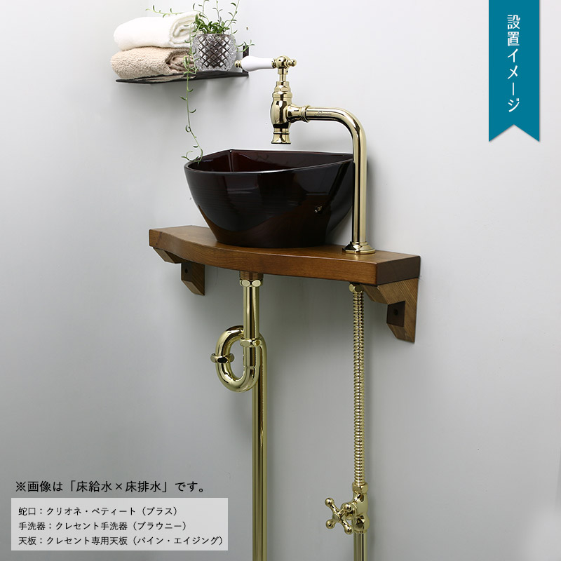 おしゃれ蛇口&置き型ボウルの手洗いカウンター付きフルセット 蛇口・手洗い器・天板・給排水部材一式 AHISET137MA-PB-WWパパサラダ。