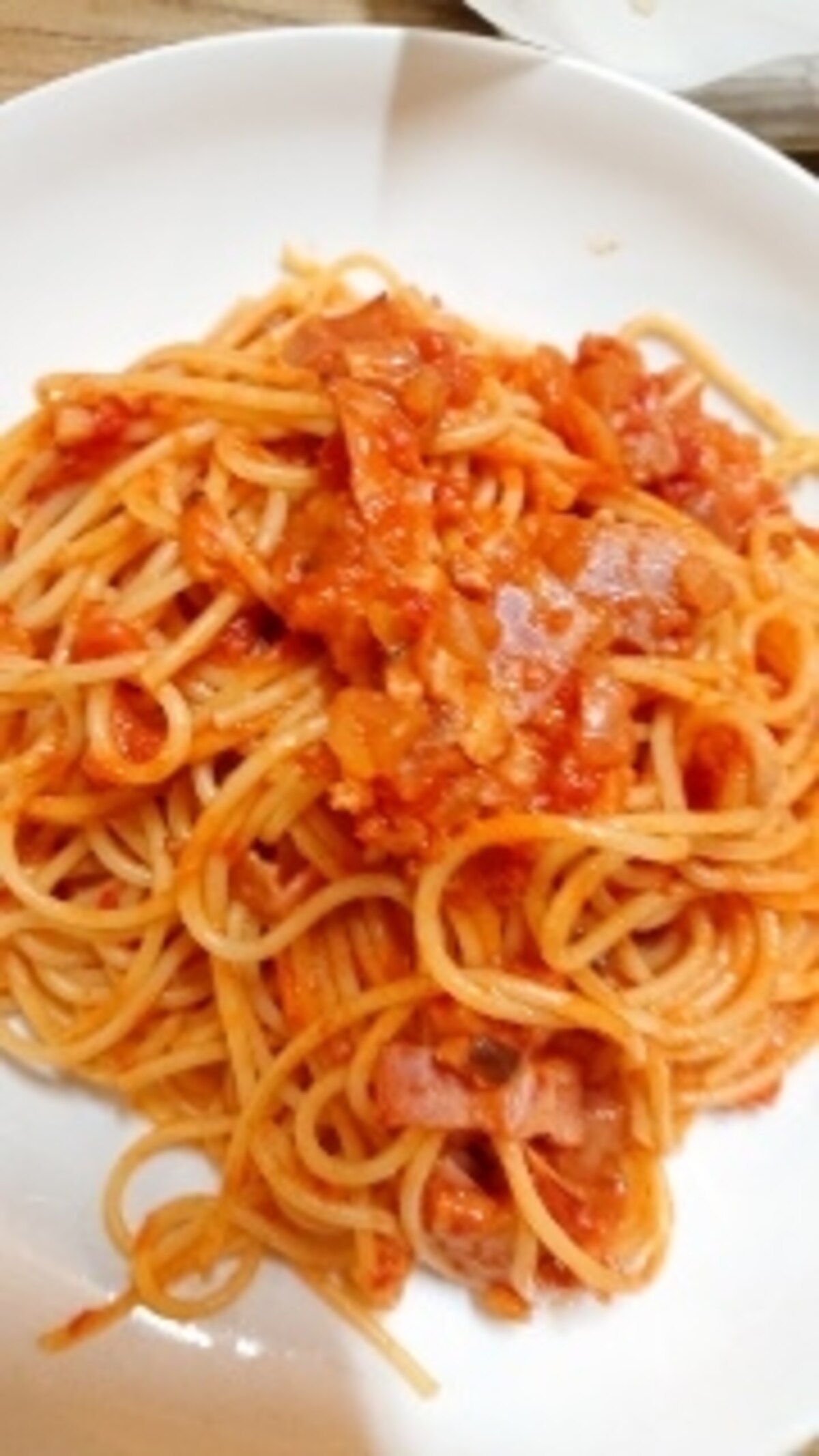 フレッシュトマトとベーコンのアンチョビバターパスタ。