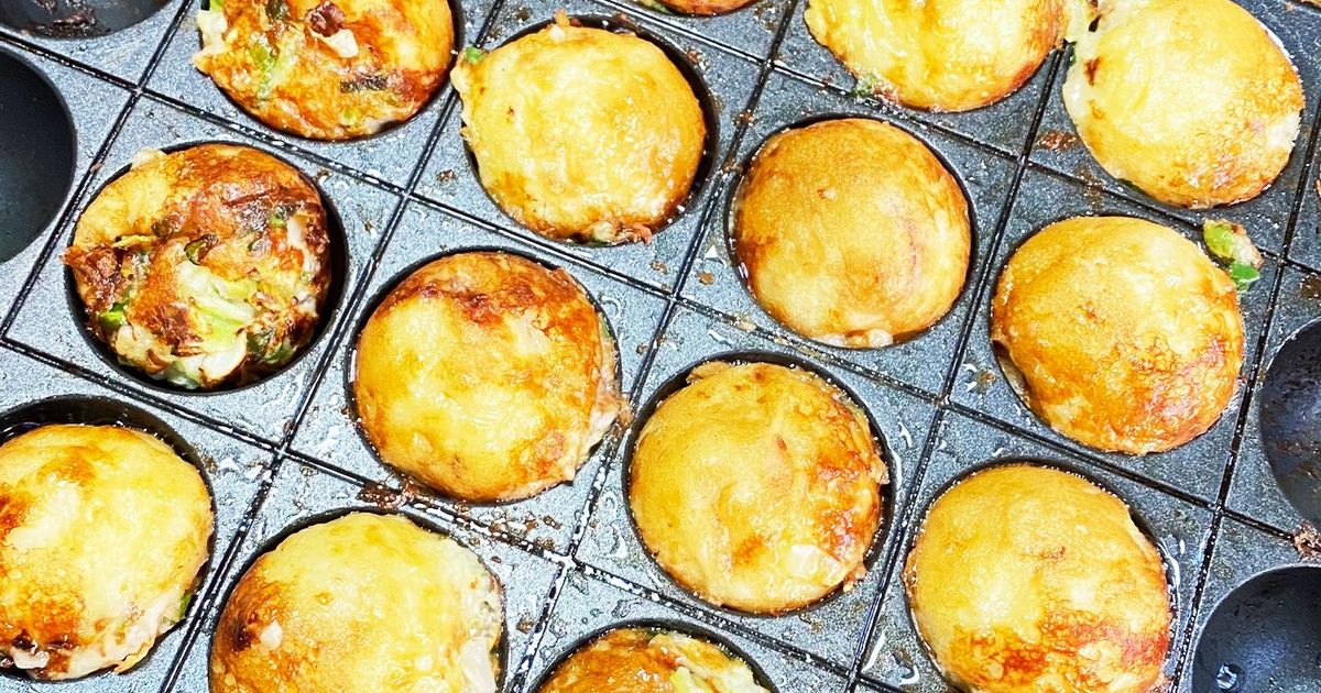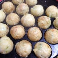 たこ焼き 材料 小麦粉 300g 浄水 1500cc 卵 4個 白だし 大3 キャベツ ねぎ たこ ウインナー チーズ キムチ 紅生姜。