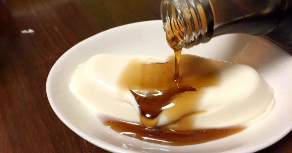 公式レシピ 「ケンちゃん豆腐」にメープルシロップをかけて食べてみたロケットニュース24。