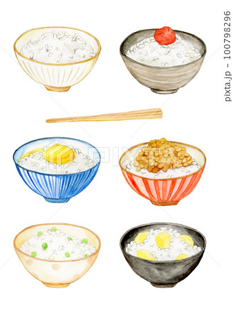 手描き水彩の美味しそうなごはんと箸のセットイラストのイラスト素材100798296- PIXTA。