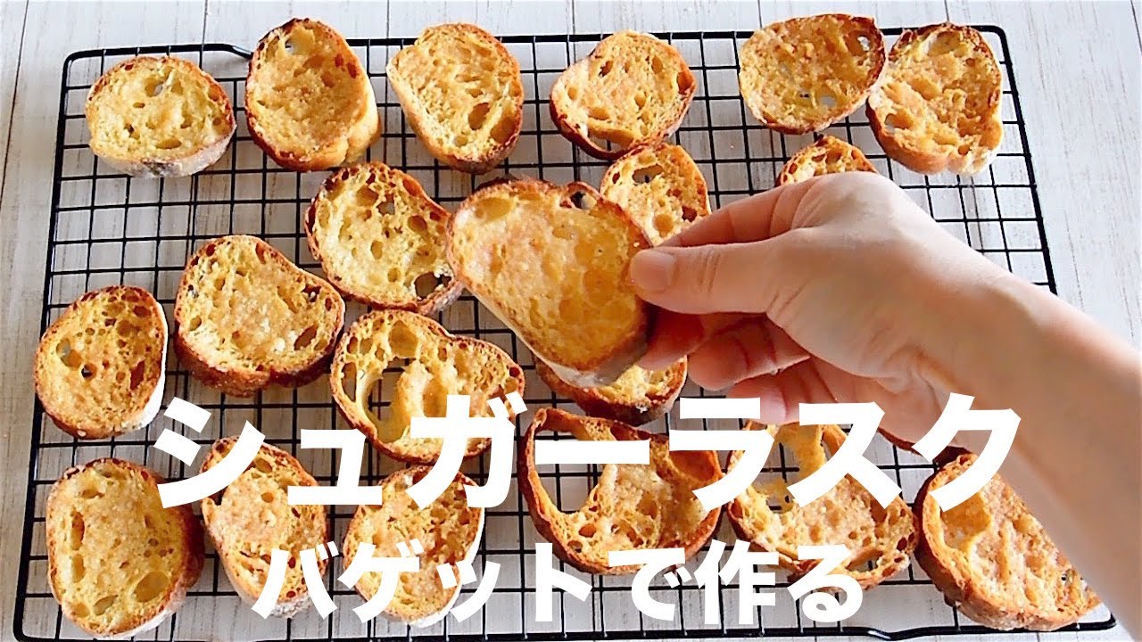 美味しい食べ方 02簡単ラスク バゲットで作るシュガーラスク! 余ったパンを美味しく再生!フランスパン バゲット修行の強い味方。