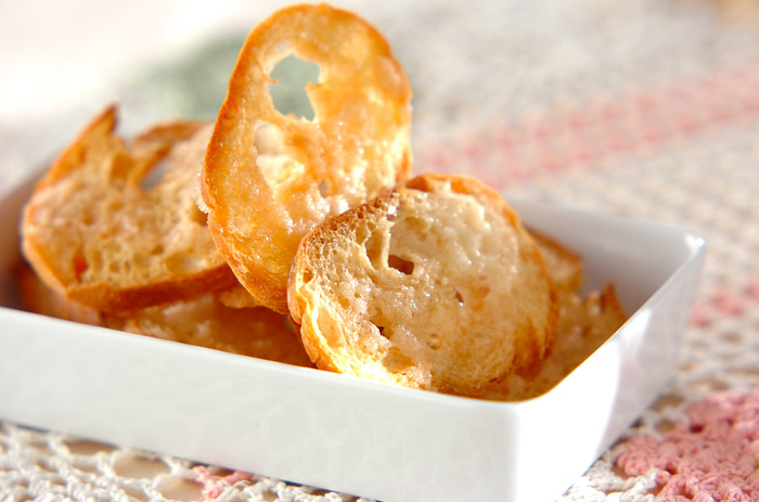 フランスパンのラスクはオーブン以外でも作れる!味付けのアレンジも食・料理オリーブオイルをひとまわし。