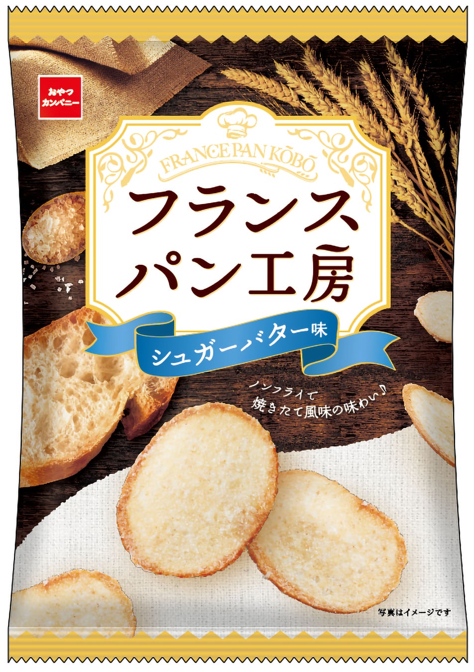 あのヒット商品が帰ってきた!小麦の芳ばしさが広がる、パンから作ったノンフライの薄焼きラスク「フランスパン工房 シュガーバター味 」株式会社おやつカンパニーのプレスリリース。