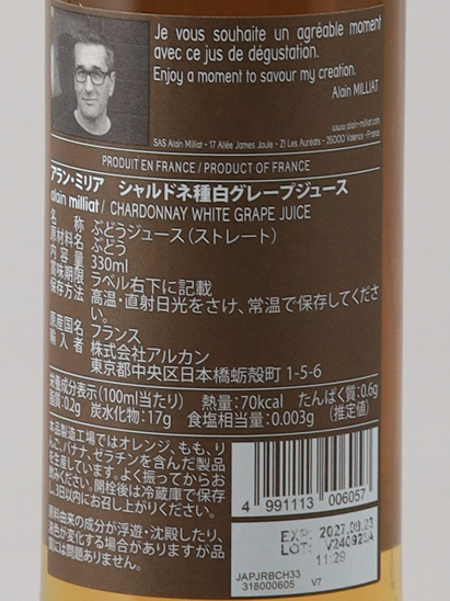 ジュース ぶどうジュース フルーツジュース アルカン アランミリア シャルドネ種白グレープジュース 330ml×3本 alain milliat :にっぽん津々浦々 - 通販 - Yahoo!ショッピング。