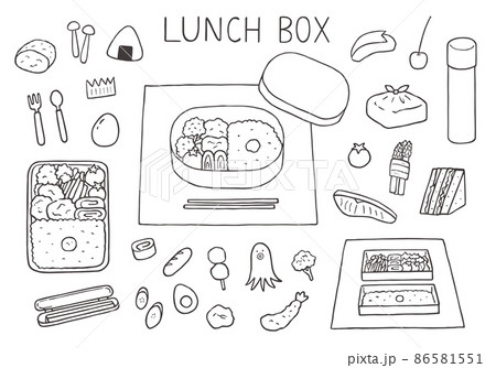 可愛いお弁当のおかずとお弁当箱セットのイラスト素材122048206- PIXTA。