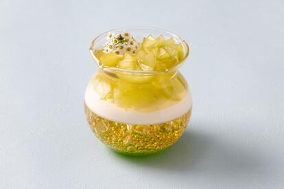 8月に販売するグラスデザートの「抹茶とアプリコットのベリーヌ」 - 赤坂経済新聞。