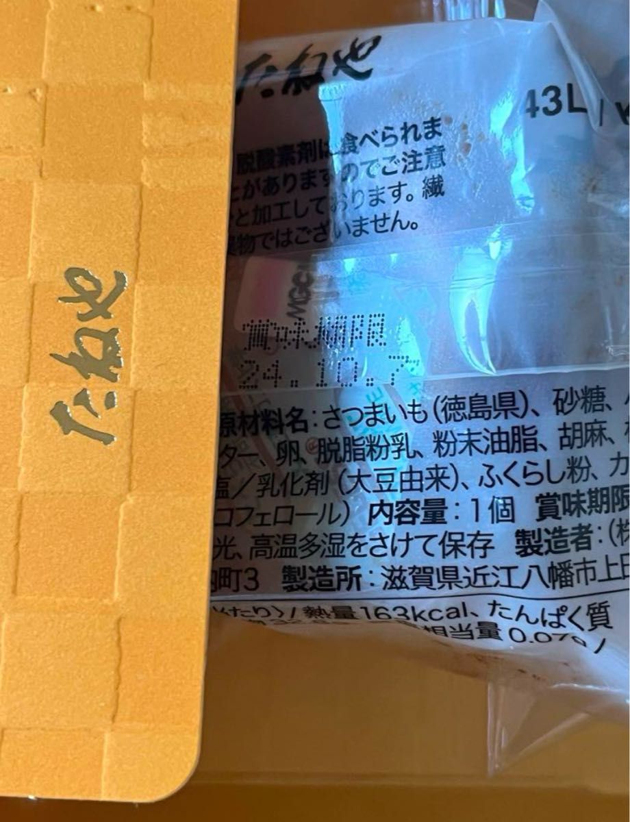 たねやふくみ天平5分で売れました福寿芋3個化粧箱賞味期限2週間。