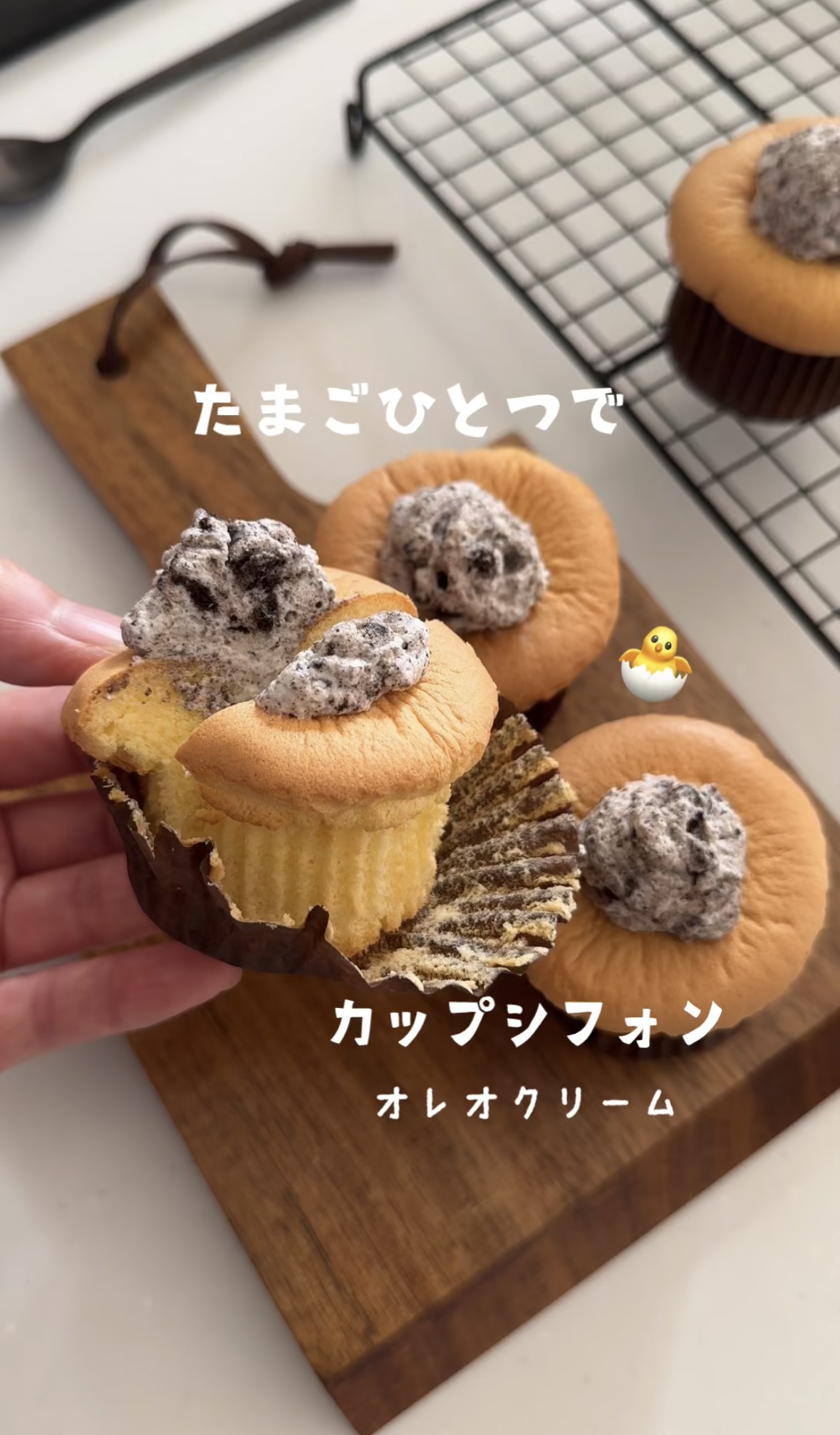 簡単だけどめちゃおいしい「オレオクリーム」♪「カップシフォン」にたっぷり入れました♡レシピもあります!チョリーナ チョコ島。