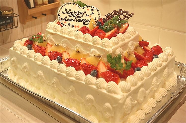 2段のケーキ!パーティーに!大阪市鶴見区のケーキ・カフェなら「パティスリー アンジャルダン」。