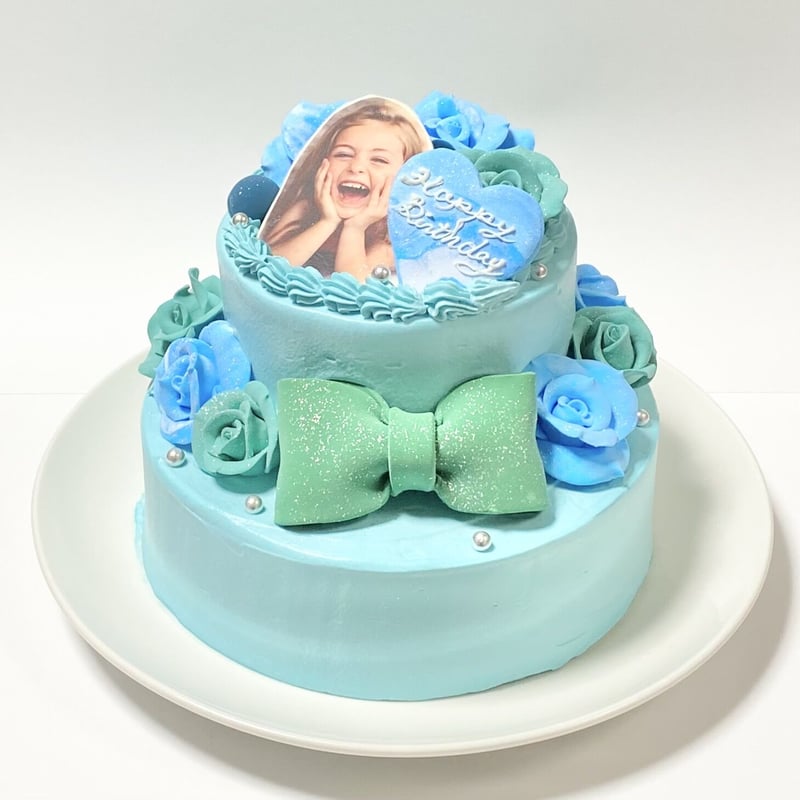 豪華 ティアラの2段ローズケーキ ブルー5号 MilkymocoCake.jp。