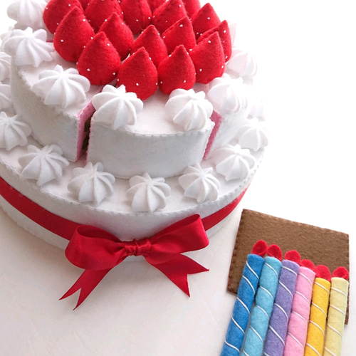 特集掲載 フェルトの二段ケーキ 二段ホールケーキ フェルトままごと お誕生日ケーキ ハーフバースデー おもちゃ・人形 May 's☆ケーキ&アイスshop通販 5551865Creema クリーマ。