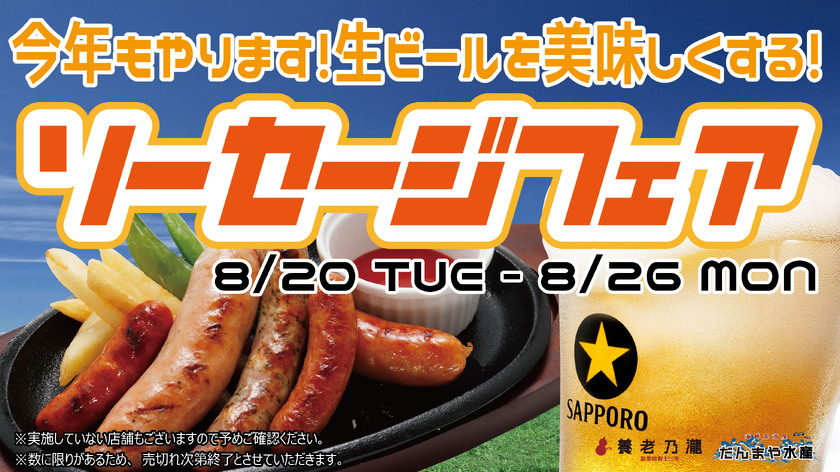 今年もやります!生ビールが美味しくなる必須アイテム!「ソーセージフェア」開催!養老乃瀧 株式会社のプレスリリース。