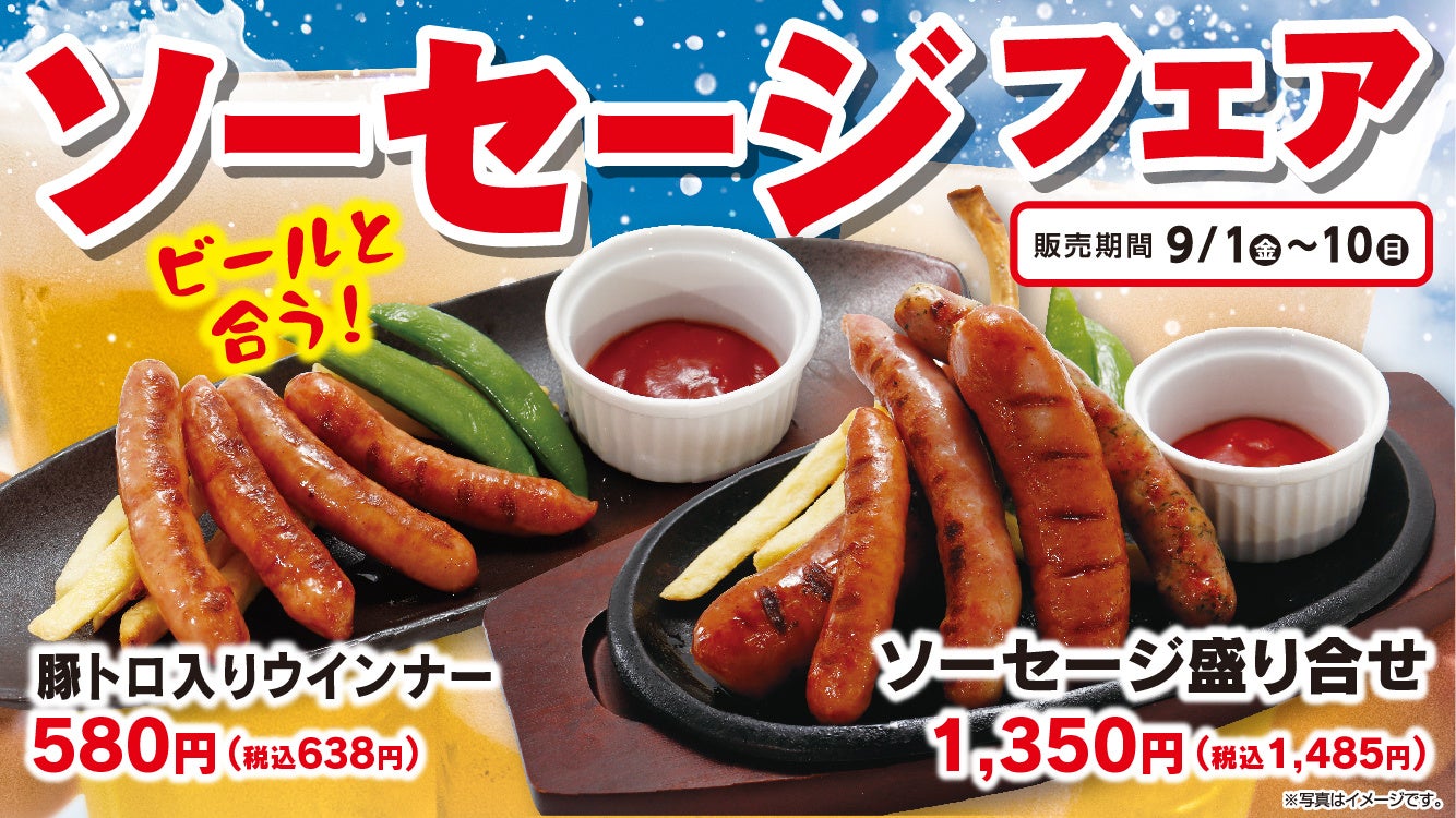 まだまだ暑い!厳しい残暑にピッタリのフェア!生ビールが美味しくなる必須アイテム、ソーセージ!今年もやります!「ソーセージフェア!」養老乃瀧株式会社のプレスリリース。