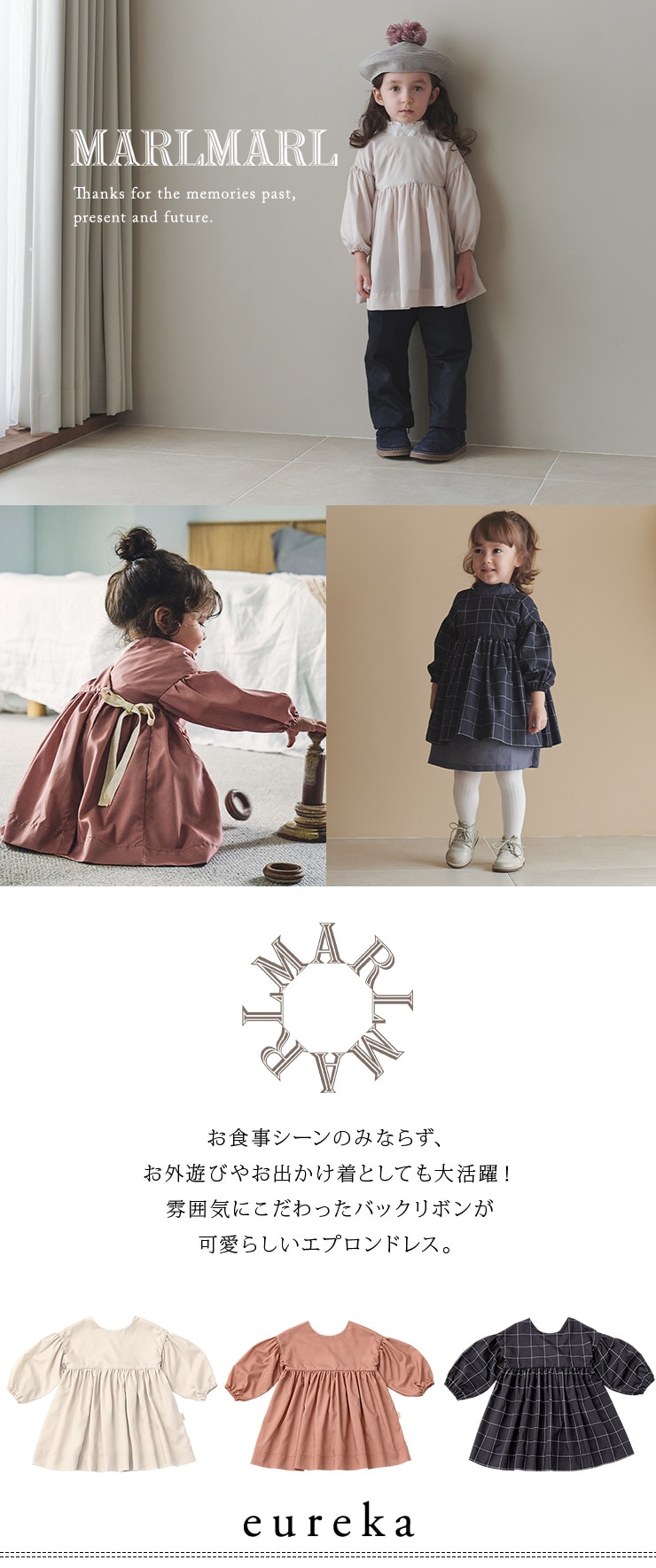 マールマール エプロン ユリイカ MARLMARL eureka お食事エプロン 長袖 ドレス 撥水 ベビー服 スタイ ビブ 女の子 出産祝い ギフト2022AW 80cm 90cm baby。