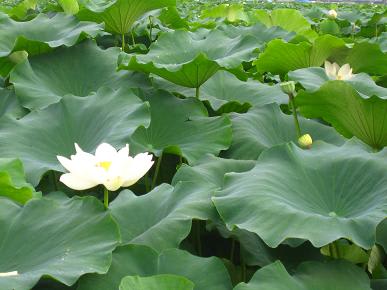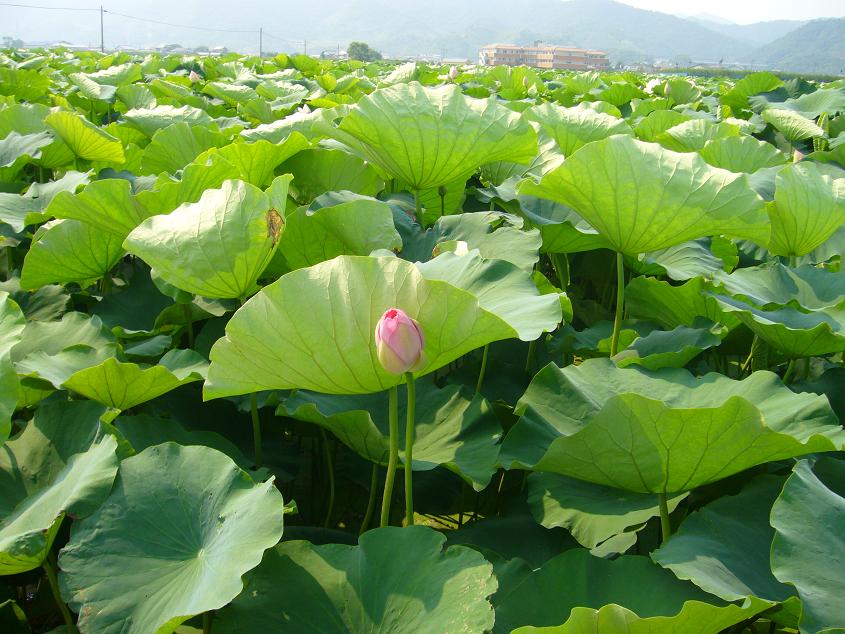 見渡す限りのハスの葉のレンコン畑 ひとり歩きの独歩標。