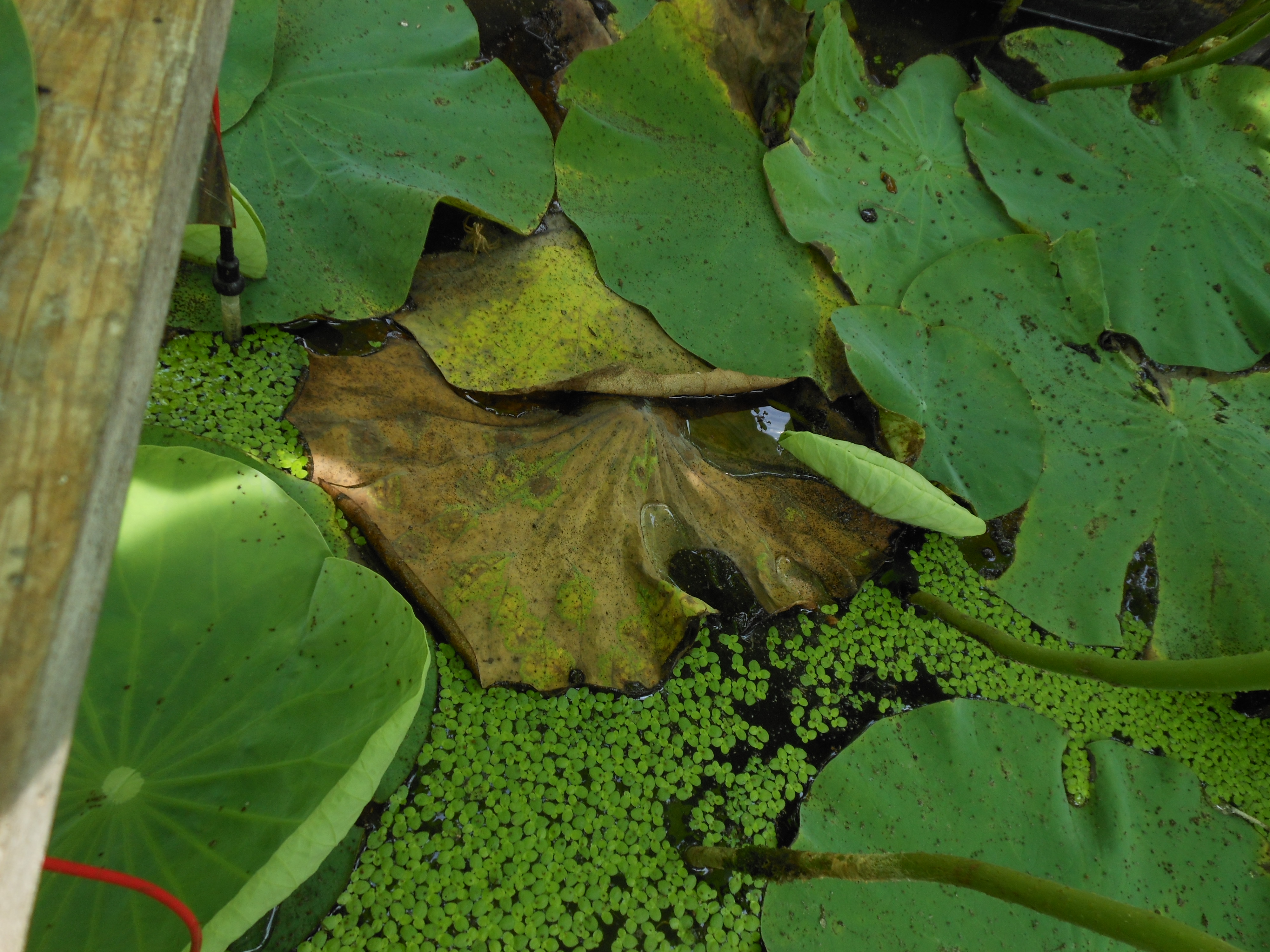 れんこんの葉っぱでシャワー - 信州やまほいくの郷。
