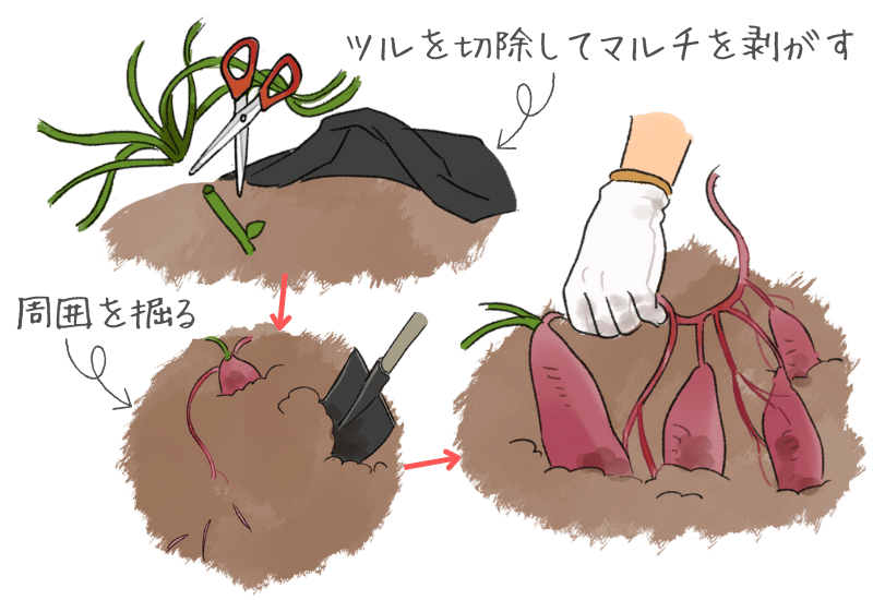 さつまいもの収穫時期・タイミングは葉や茎に注目!さつまいものさつまいもの収穫時期・タイミングについて解説おいも美腸研究所。