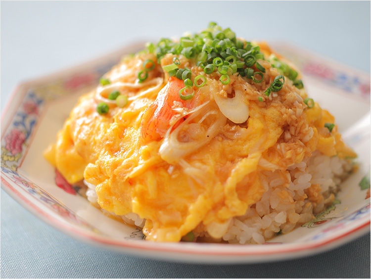 簡単 かに入りふわとろ卵の丼「天津飯」プロのレシピ。あんはなし、ごま香る台湾風です!三越伊勢丹の食メディアFOODIE フーディー。