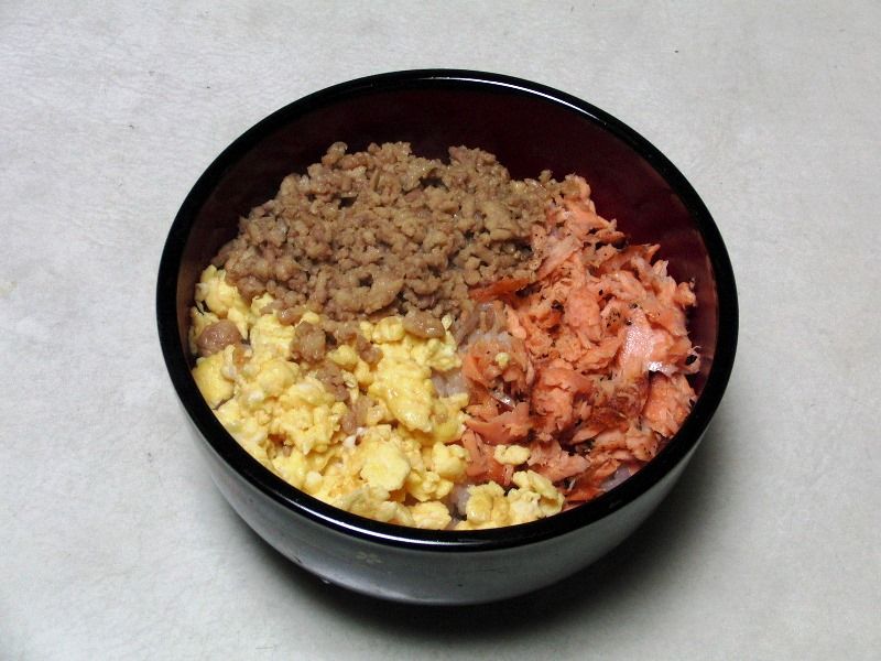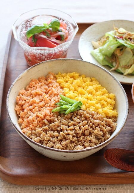 三色鮭そぼろ丼 ‥ボリュームたっぷり‥作り置きにも‥。