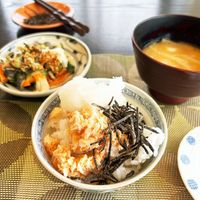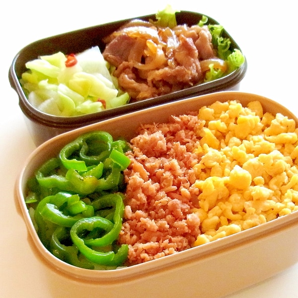 今日のお昼ご飯 〜手作り鮭フレークの三色丼〜 : 料理教室 あきさんち。