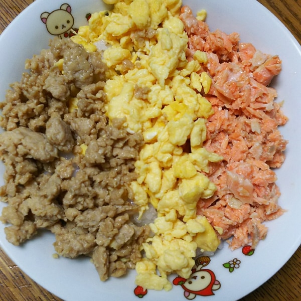 三色丼 鶏・卵・鮭 のレシピ・作り方 - Fily。