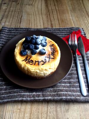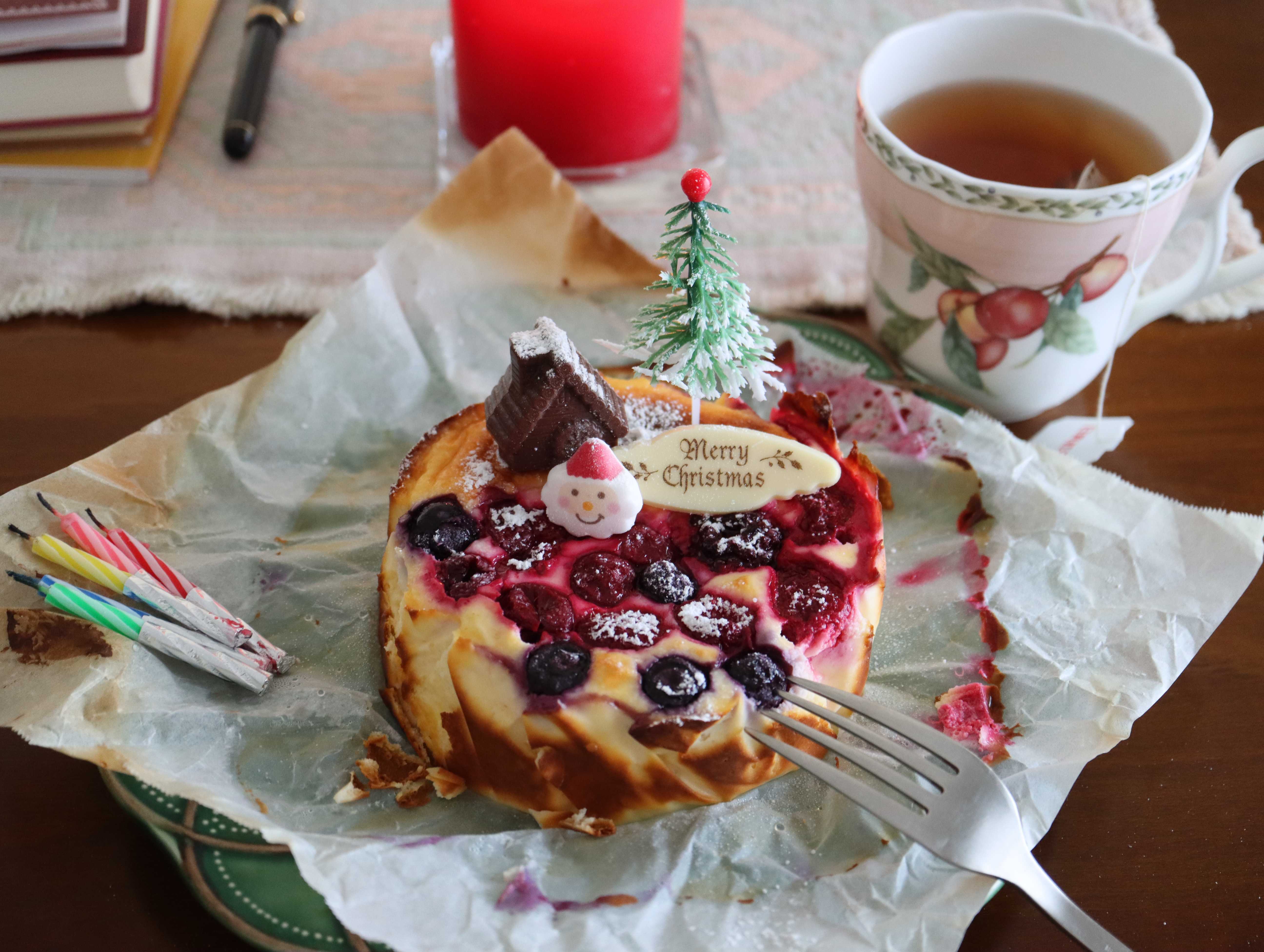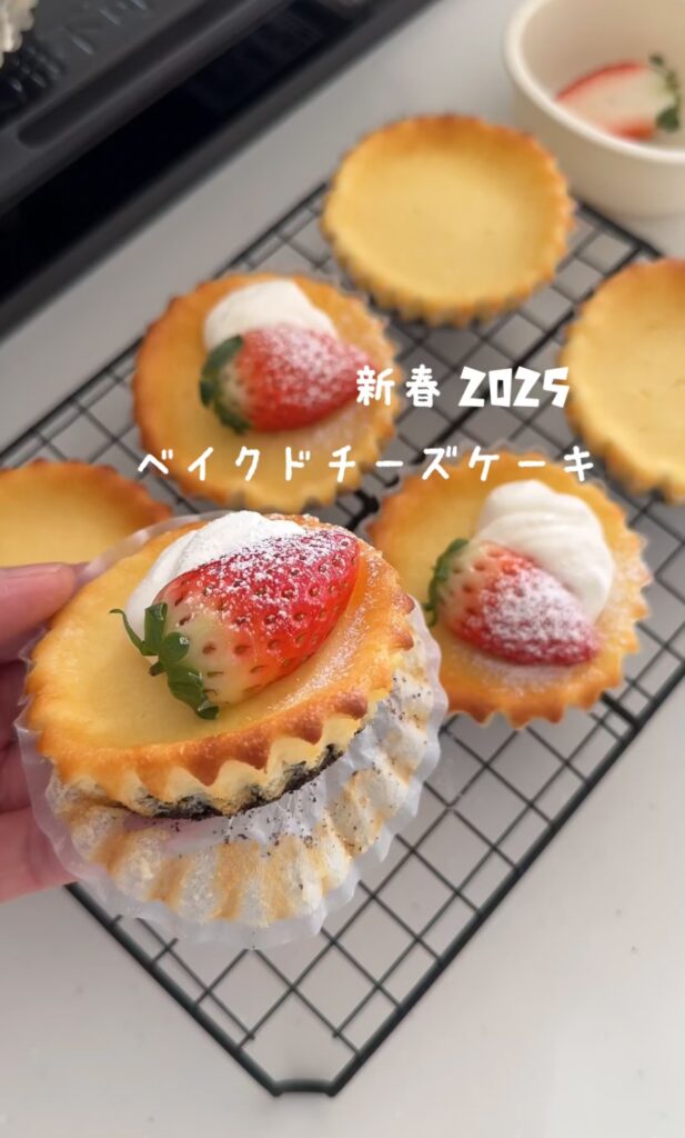 新春おひとり様ベイクドチーズケーキ」ちょっと豪華に新春いちごバージョン🍓濃厚ベイクドチーズケーキのレシピだよ!チョリーナ チョコ島。