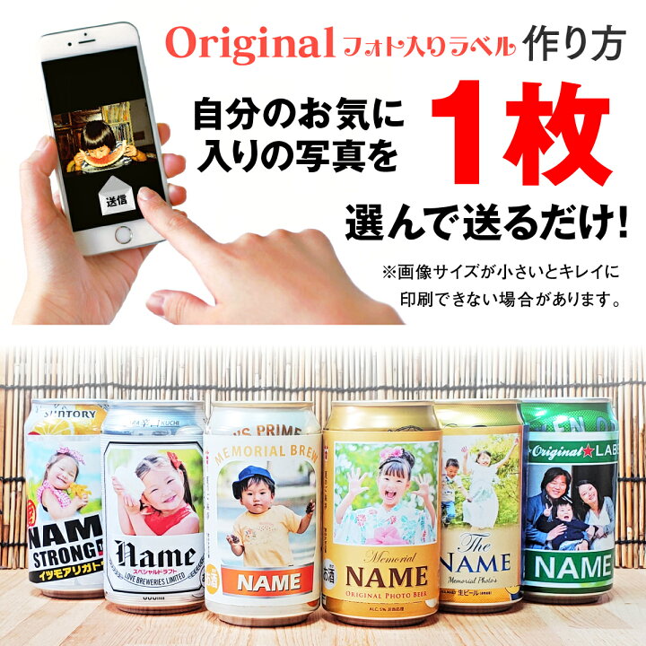 オリジナルラベルの作り方即日発送OK 写真・名入れオリジナルラベル・缶ビール・お酒ギフト作成 スナップ缶ビール。