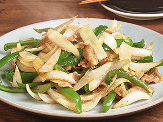 新玉ねぎと豚肉の生姜焼き透析食.com 管理栄養士が全レシピ考案!透析患者さん向け食事療法総合サイト。