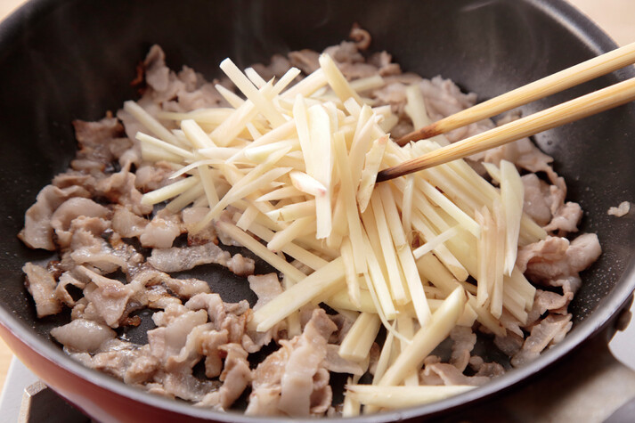 千切りショウガと豚バラの炒め物~簡単3stepおつまみ~。