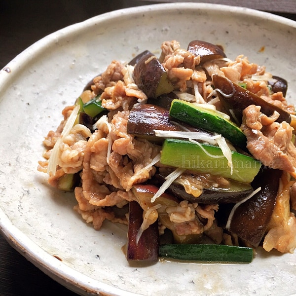 新生姜たっぷり入れて、豚肉とナスのオイスター炒め♪。