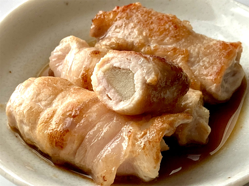 材料2つで味付けいらず!岩下の新生姜の豚バラ巻き。