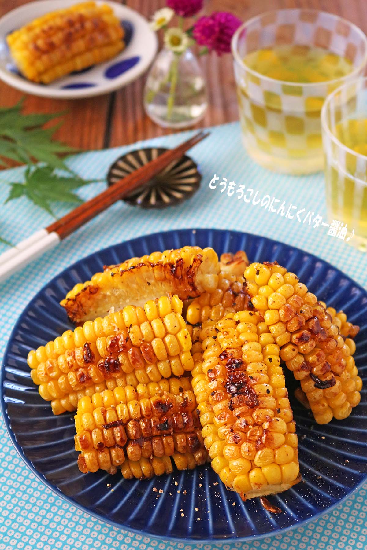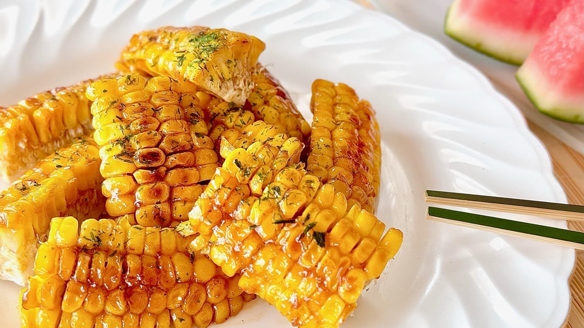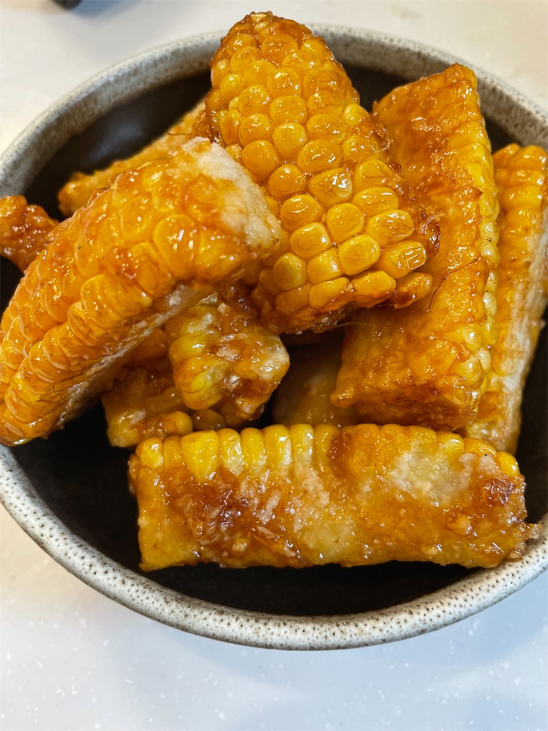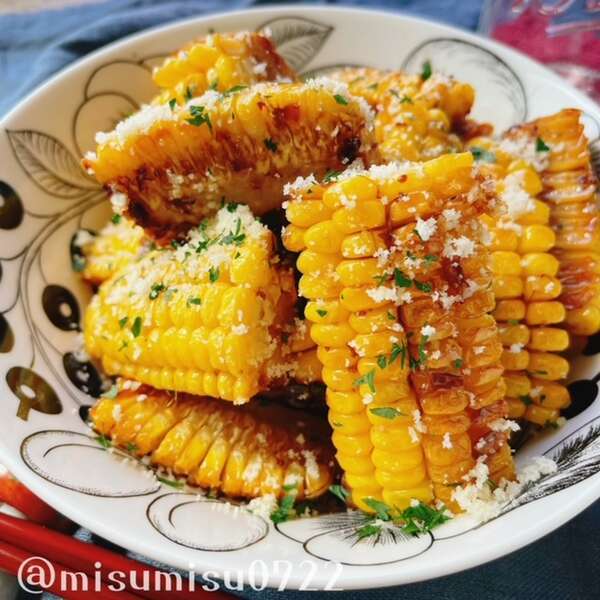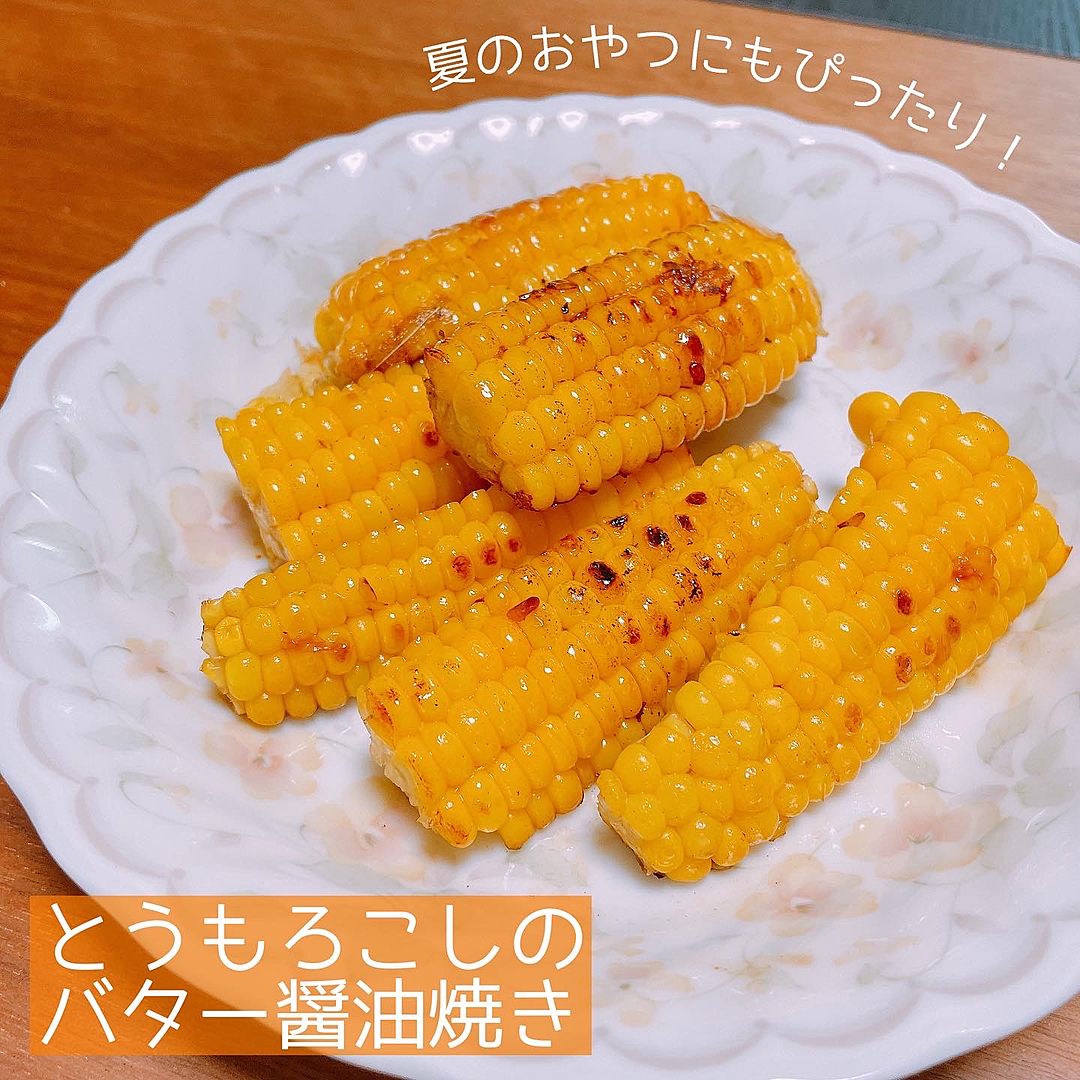 これからとっても美味しくなる「とうもろこし」🌽 ただ焼いて甘辛味とバターで絡めただけなんだけど、お祭りで食べる屋台あの味を思い出しちゃいます😋今回は食べやすく小さめにカットしてみました! おかずにもなるし、子どものおやつやちょっと小腹がすいたとき。